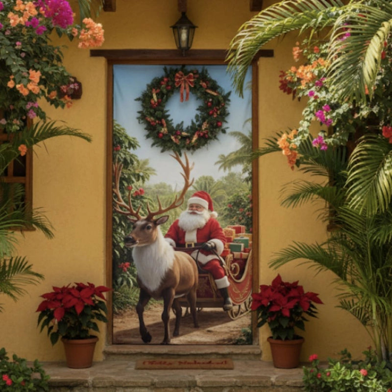 Transforma tu entrada al instante con esta vibrante cubierta. Recibe a tus invitados con la alegría de santa y un ambiente navideño que todos amarán.